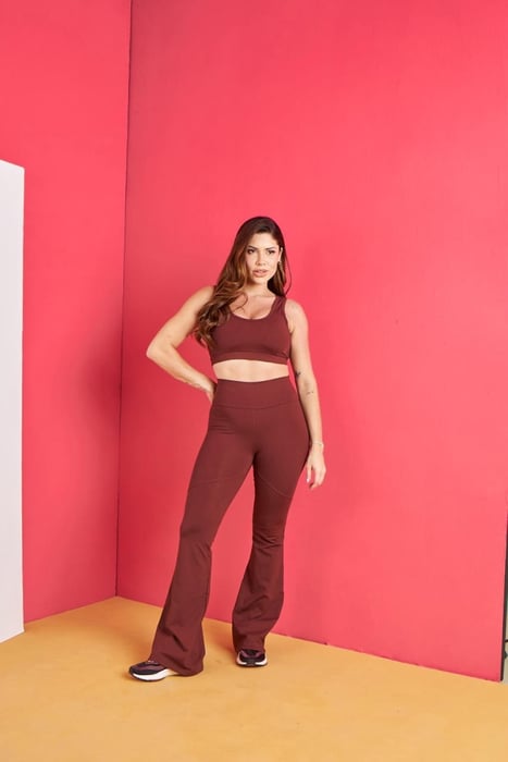 Top com costas modernas e recorte estiloso + calça flare com modelagem que valoriza o corpo ?
