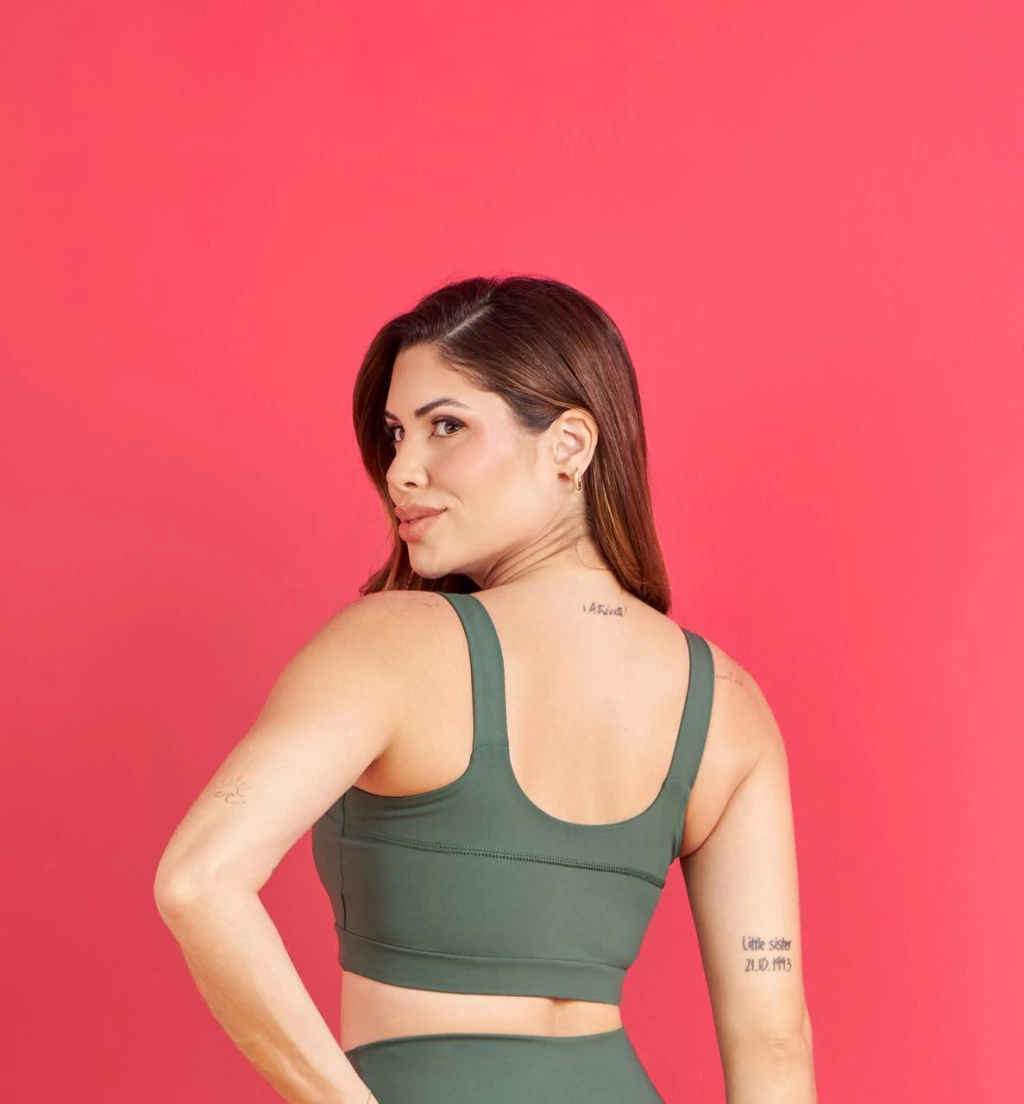 em poliamida gramatura 310, com bojo removível e costuras com design moderno.